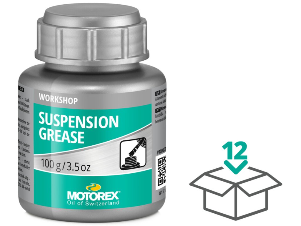 SUSPENSION GREASE bylo speciálně vyvinuto pro montáž a údržbu těsnicích kroužků ve vidlicích a tlumičích. Kromě svých vlastností snižujících tření je také přizpůsobeno použitým elastomerům, povrchovým úpravám a olejům do vidlic. Efektivně snižuje efekt stick-slip.