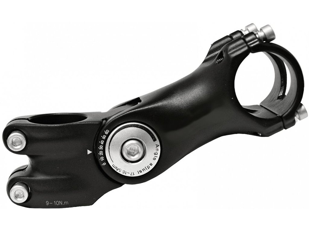 Stavitelný představec O 31,8 mm, Délka: 75 mm, Úhel: 0°-+60°, Průměr pro vidlici: 28,6 mm (1 1/8"), Materiál: AL, Hmotnost: ~247 g