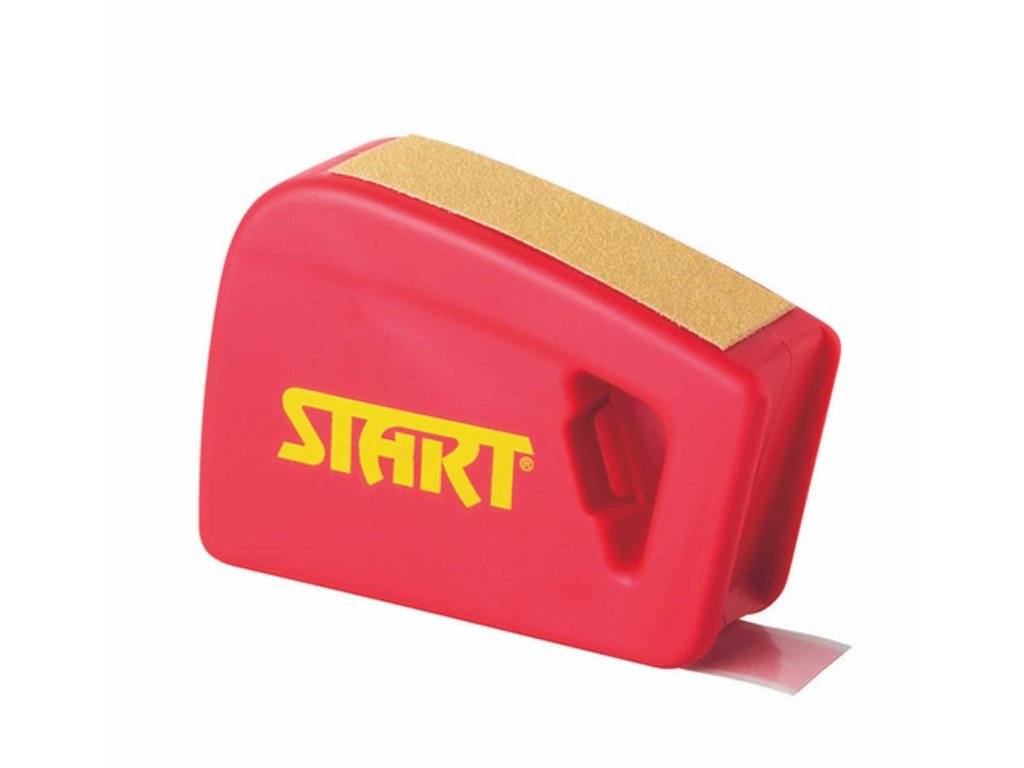 Před aplikací si budete muset určit délku zóny pro nalepení pásky. Tak, jak jepopsáno výše. Nezkušeným samozřejmě rádi poradíme.Očistěte místo na které budete lepit pásku. Ujistěte se, jestli je skluznice po vyčištěnízcela suchá.Očištěnou plochu zdrsněte smirkovým papírem, který je nalepen na horní stranězásobníku. Skluznici bruste nejdříve příčně a pak podélně. Důležité je, aby opravducelá plocha určená k nalepení pásky byla přebroušená. Hadříkem setřete prach.Začněte lepit. Postupujte tak, jak je běžně zvykem pracovat s lepící páskouv zásobníku. Důraz je potřeba klást na to, aby nevznikly vzduchové bubliny a abybyla páska nalepena rovně. K tomu Vám pomůže vodítko připevněné k zásobníku.Tlačte jím mírně do skluznice a efekt bude dokonalý.Lepenou pásku přerušte následujícím způsobem: Nejdříve prstem stiskněte brzdu.Zásobník vytočte směrem nahoru. Přitlačte řeznou hranou proti pásce. Posléze siuřezaný konec pásky povytáhněte (1 cm), aby byl připraven k dalšímu lepení. Podlebodu 4 a 5 přilepte pásku i na druhou polovinu skluznice.Hranou zásobníku vytlačte případné vzduchové bubliny, které uvízly pod páskou.Nebojte se přitlačit.Strhněte z pásky ochranný film. Pokud se stane, že při strhávání uvidíte na páscenějaká světlejší místa, znamená to, že jste v předchozím kroku nevytlačili všechenuvízlý vzduch. Film nalepte zpátky a postup s vytlačováním vzduchu opakujte.Jakmile se Vám toto podaří, film strhněte celý.Nechte lyže venku zchladit – pak teprve budou připraveny k jízdě. Na „namazanou“skluznici nesahejte. Svázané lyže nestlačujte k sobě. Takto připravené lyže Vámbudou spolehlivě sloužit 50 – 60 kilometrů při teplotách od +5°C do -20°C.Ojetou pásku Grip Tape odstraňte škrabkou na lyže. Pomůže Vám, když ji předodstraňováním navlhčíte smývačem.